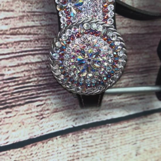 Refurbished iced and dusty rose NFR browband headstall